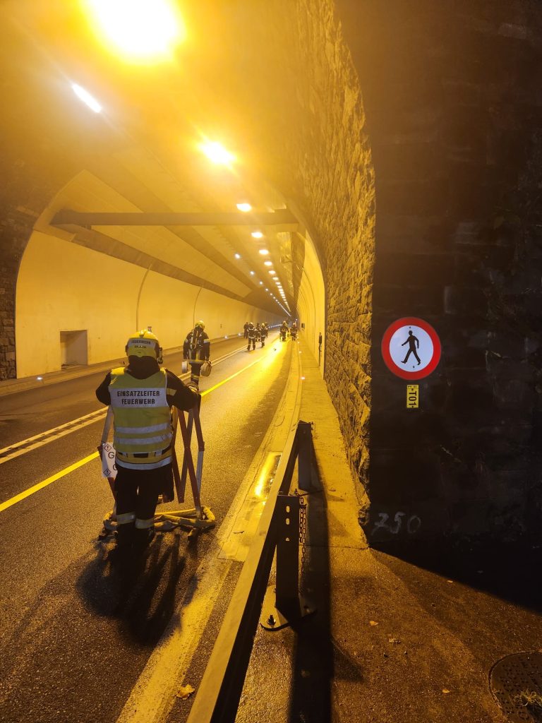 Das Einfahren mit Einsatzfahrzeugen in den Tunnel war im Rahmen der Übung nicht vorgesehen, um realistische Bedingungen hinsichtlich Sicht, Orientierung und Zugang zu simulieren.