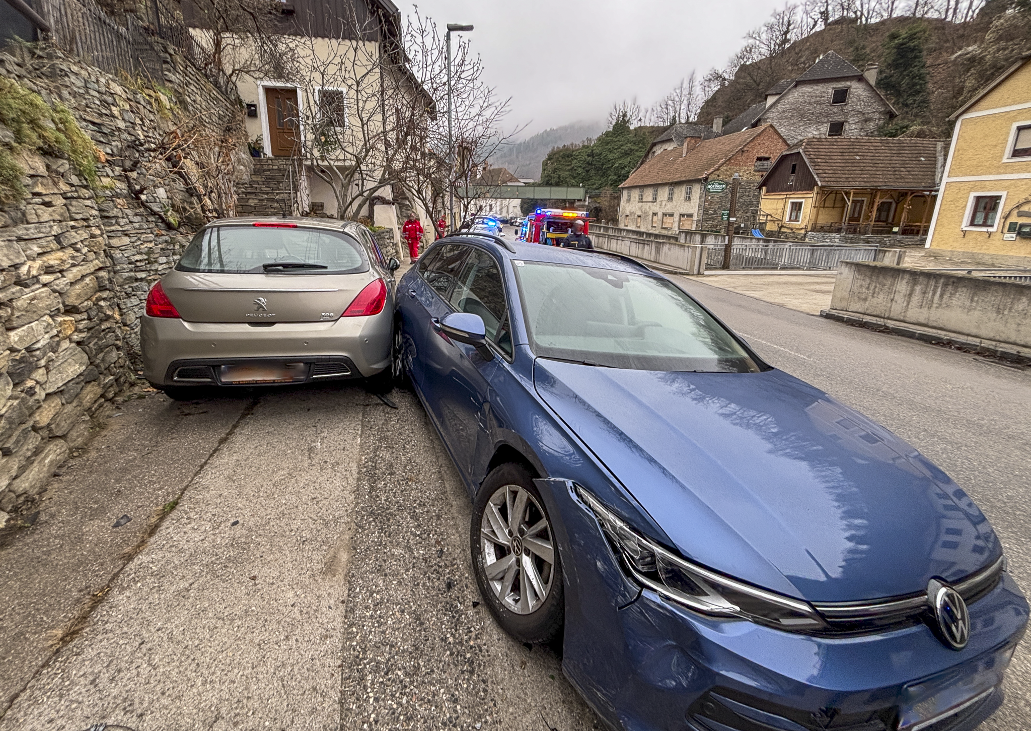 Vor Ort stellte sich heraus, dass ein PKW aus bislang unbekannter Ursache aus dem Spitzer Graben kommend zwischen eine Steinmauer und ein am Nebenstreifen der Fahrbahn abgestelltes Fahrzeug auf dem Gehsteig geprallt war. Der Lenker des Unfallfahrzeuges wurde vom Roten Kreuz medizinisch versorgt. Im abgestellten Fahrzeug befanden sich keine Personen. Zum Zeitpunkt des Unfalls hielten sich glücklicherweise keine Fußgänger am Gehsteig auf.