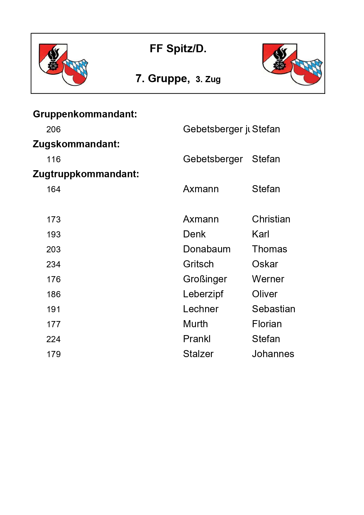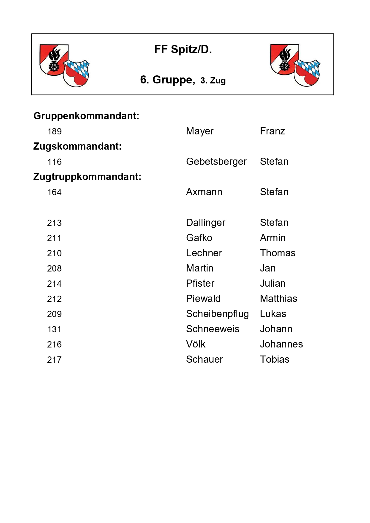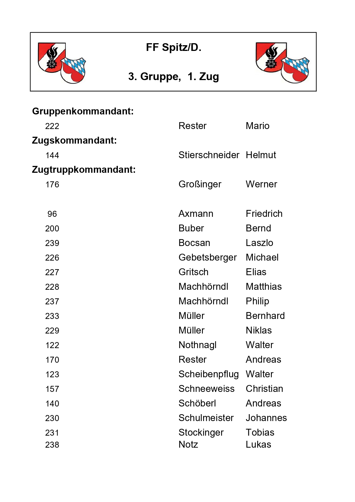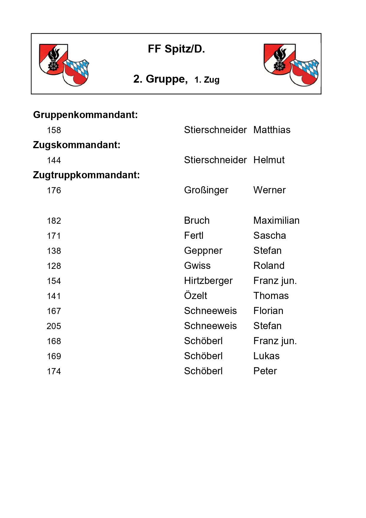 Bei Klick auf die Gruppenkommandanten öffnet sich eine Liste mit allen Feuerwehrmitgliedern der jeweiligen Gruppe.