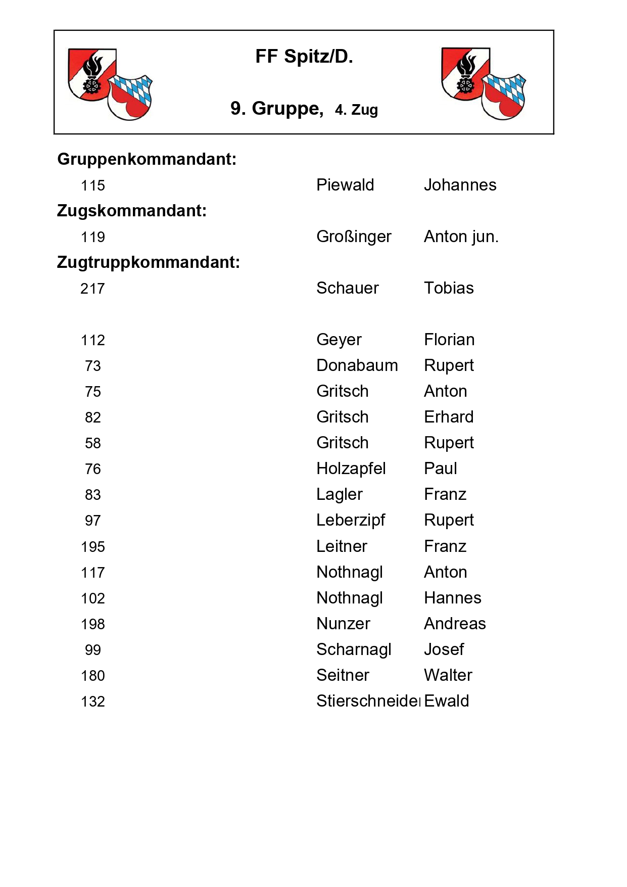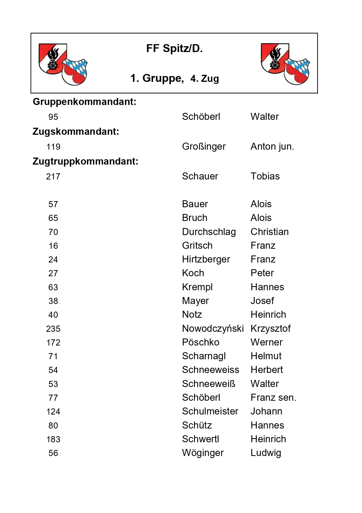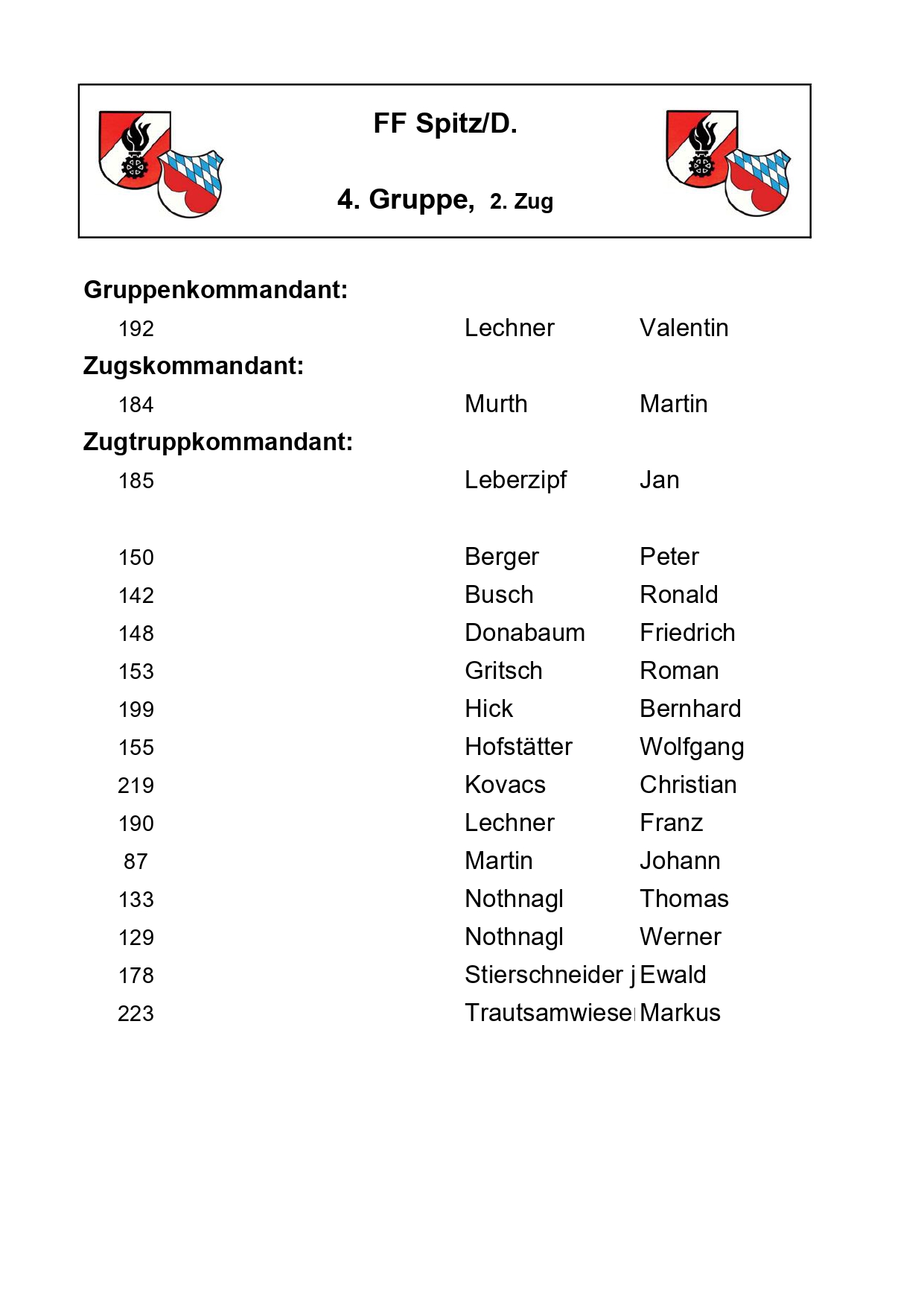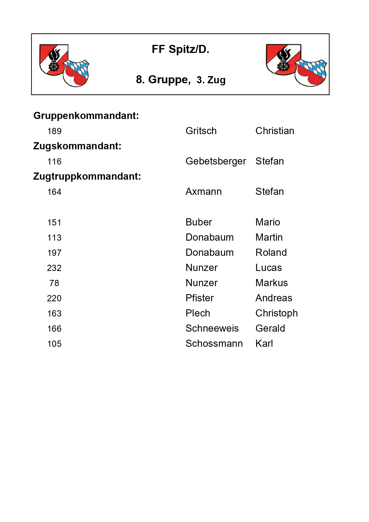Bei Klick auf die Gruppenkommandanten öffnet sich eine Liste mit allen Feuerwehrmitgliedern der jeweiligen Gruppe.