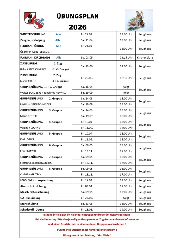 Übungsplan der FF Spitz